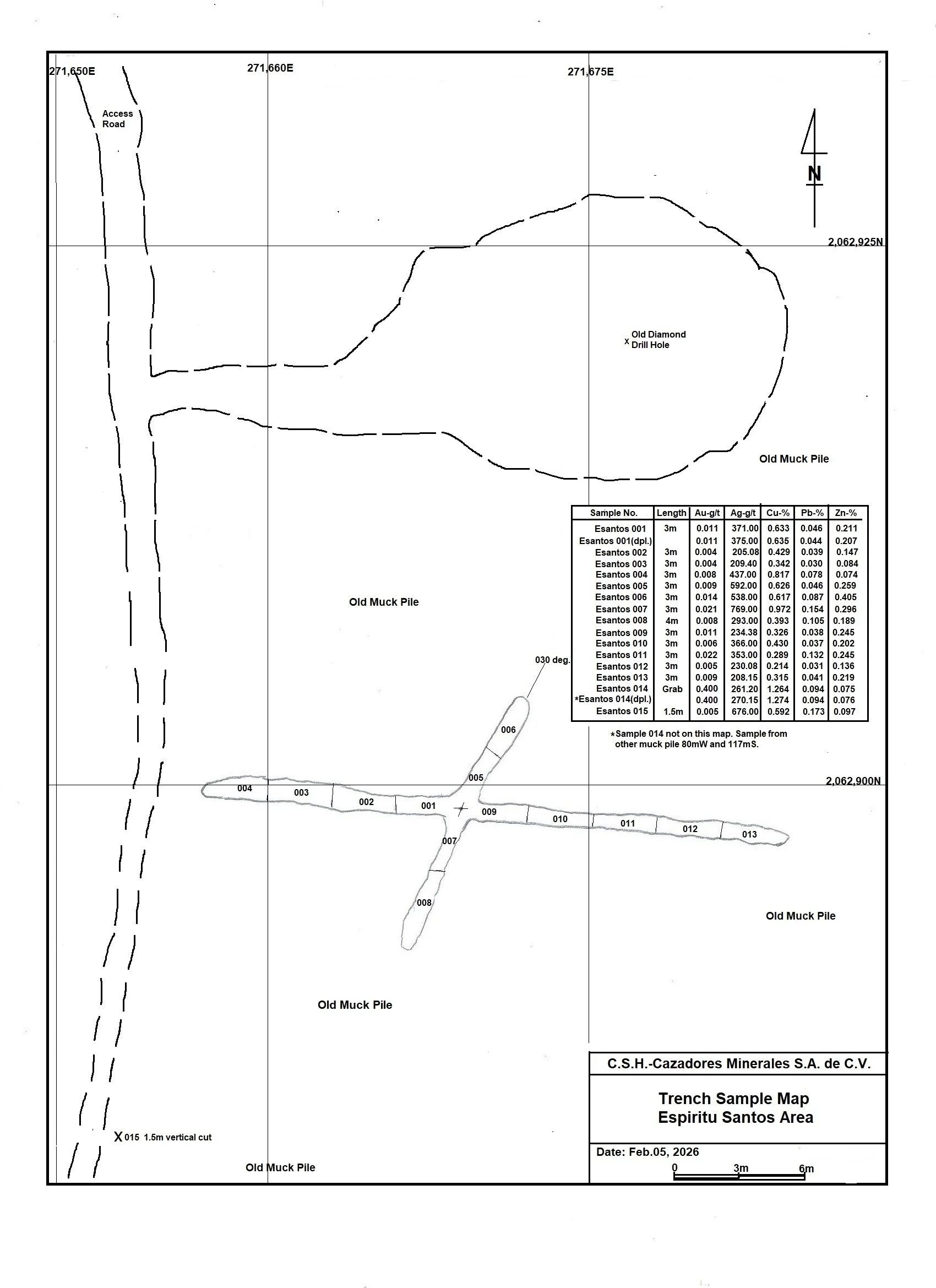 CSH intends to carry out a volumetric survey to outline the potential volume / tonnages present at each stockpile site along with additional systematic sampling to determine the average polymetallic grades for each site. Concurrent with the above sampling program, the Company will be collecting a composite sample for metallurgical testing.